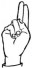 На ћирилици написано ИГЊАТИЈЕ МАЛИЋАНИН састоји се из 17 слова [?]. Исписано ћириличном једноручном азбуком за глувонеме: